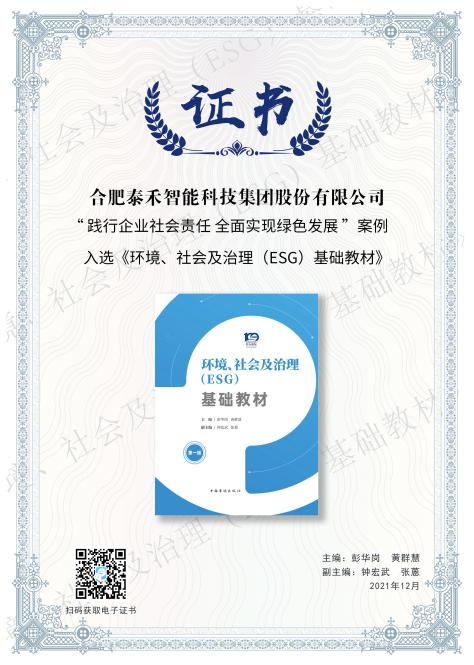 泰禾智能ESG案例入選我國首本《環(huán)境、社會及治理(ESG)基礎教材》