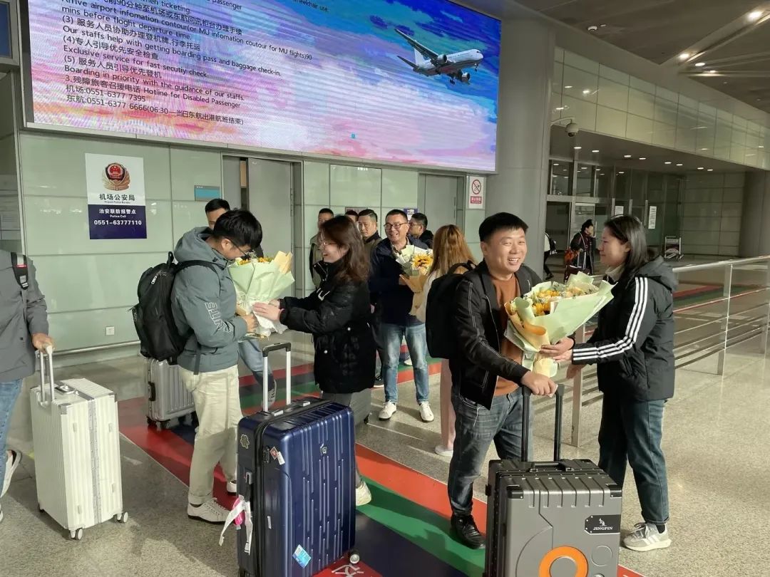 公司總經理高度重視此項目成功落地,特精心安排隆重的接機歡迎儀式,由正小遠們送上鮮花和擁抱,向凱旋歸來的團隊表示祝賀。