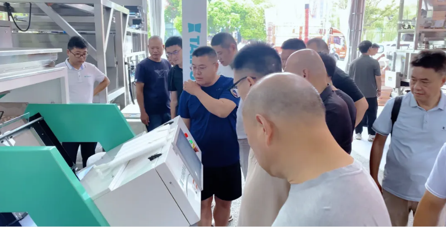 展位現(xiàn)場人氣高漲,吸引了眾多客戶駐足參觀,現(xiàn)場工作人員與客戶熱情交流,洽談合作;領先的技術和應用解決方案讓客戶耳目一新,其高效分選、超大產(chǎn)量、定制化方案的強大性能為客戶品質(zhì)生產(chǎn)保駕護航。