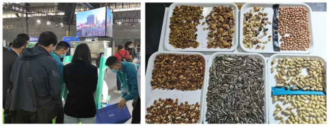 展會現(xiàn)場,泰禾智能AI分選設(shè)備進(jìn)行了多種堅果炒貨食材分選演示,包括瓜子、花生果、花生米、杏仁、核桃、松子等。