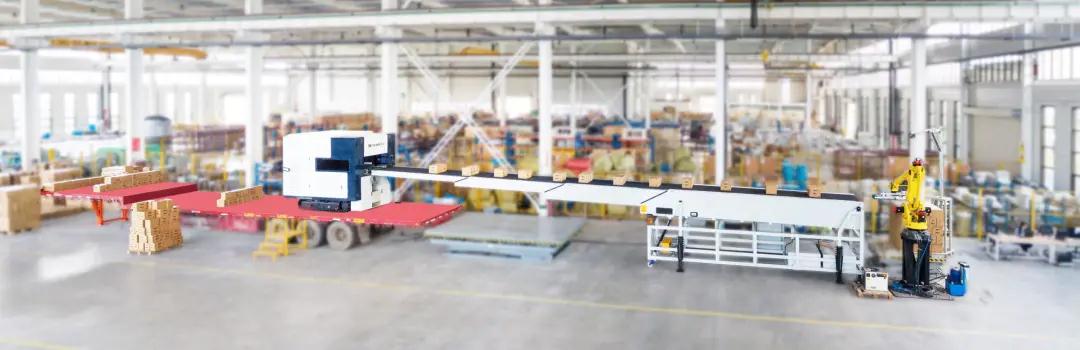 泰禾智能系統(tǒng)可對生產(chǎn)要素進行靈活配置和調(diào)整,提升產(chǎn)品搬運的速度,可高效、長期穩(wěn)定運作,實現(xiàn)多批次、定制化產(chǎn)品裝車,完成獲取任務(wù)-拆垛-掃碼-裝車等工作流程。