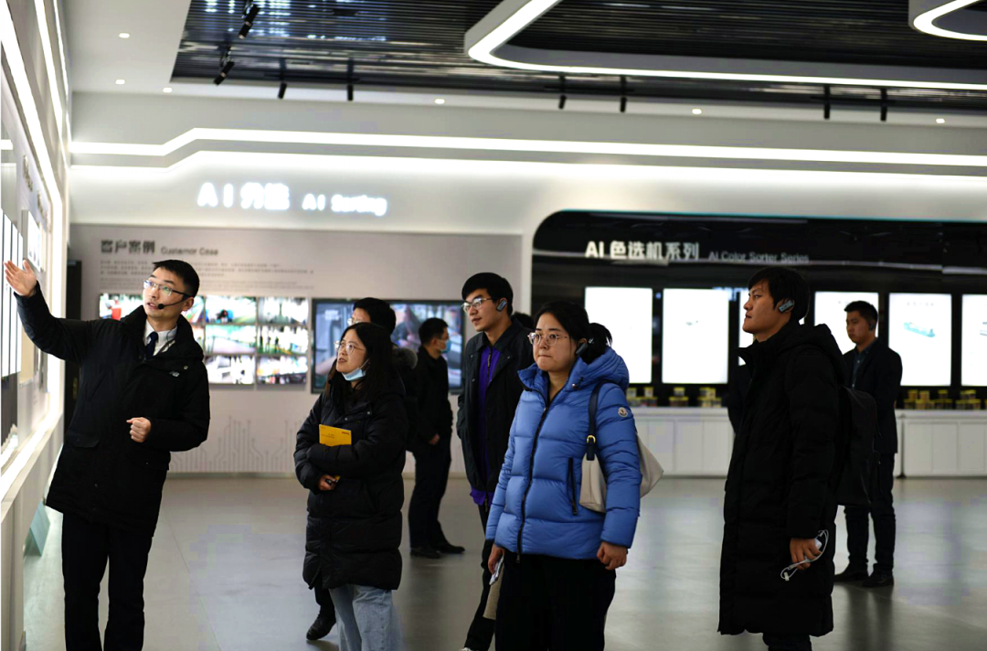 媒體記者團(tuán)一行,參觀了泰禾智能文化展廳,觀看了大米色選機(jī)分選流程。聽取了泰禾智能 國內(nèi)外銷售情況、 核心競爭力、未來發(fā)展定位、核心六大產(chǎn)品、企業(yè)文化等匯報(bào)。并對(duì)泰禾智能堅(jiān)持創(chuàng)新、推動(dòng)技術(shù)革新給予了高度肯定。
