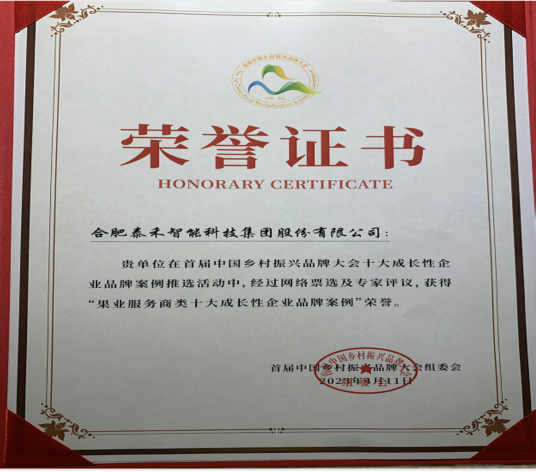 泰禾智能榮獲首屆中國(guó)鄉(xiāng)村振興品牌大會(huì)果業(yè)服務(wù)商類十大成長(zhǎng)性企業(yè)品牌