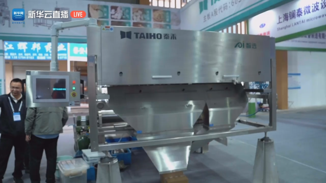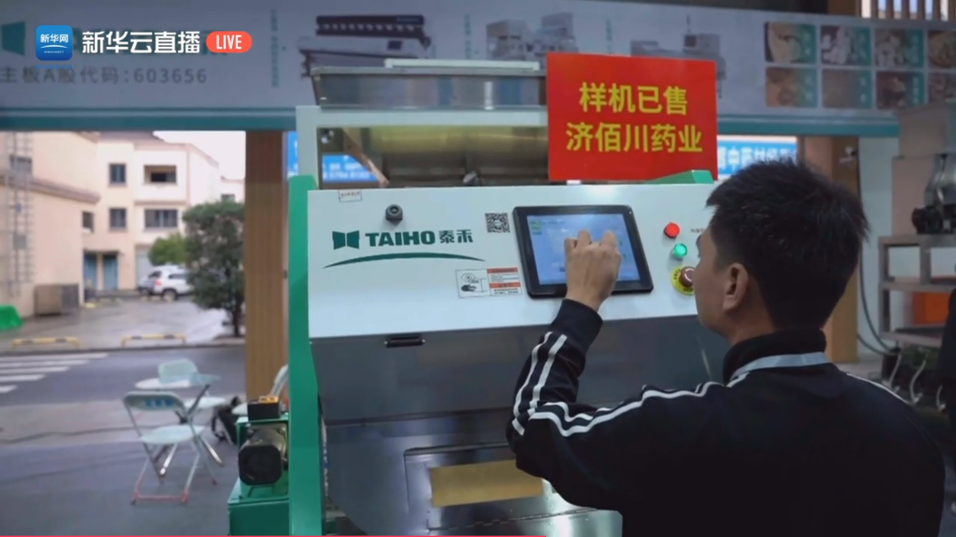 新華網(wǎng)直擊泰禾智能展位現(xiàn)場,對泰禾AI智選中藥飲片系列色選機給予了充分的肯定和高度的贊揚。