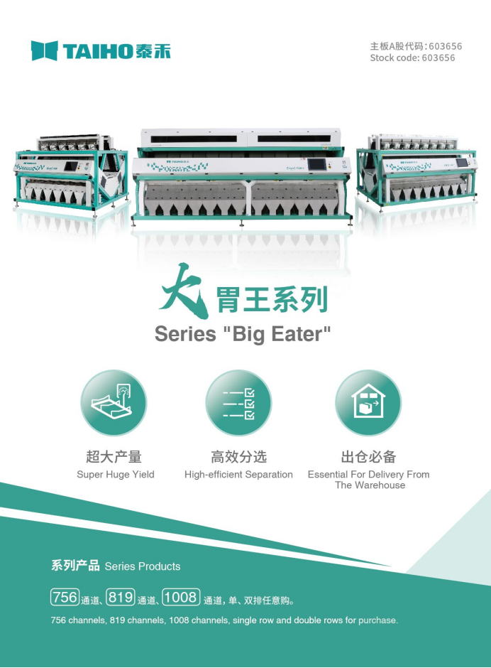 “大胃王”系列的問(wèn)世,針對(duì)大米加工商超大產(chǎn)量、高效分選的需求,提供更高精度、更大產(chǎn)量、更高效分選的解決方案。