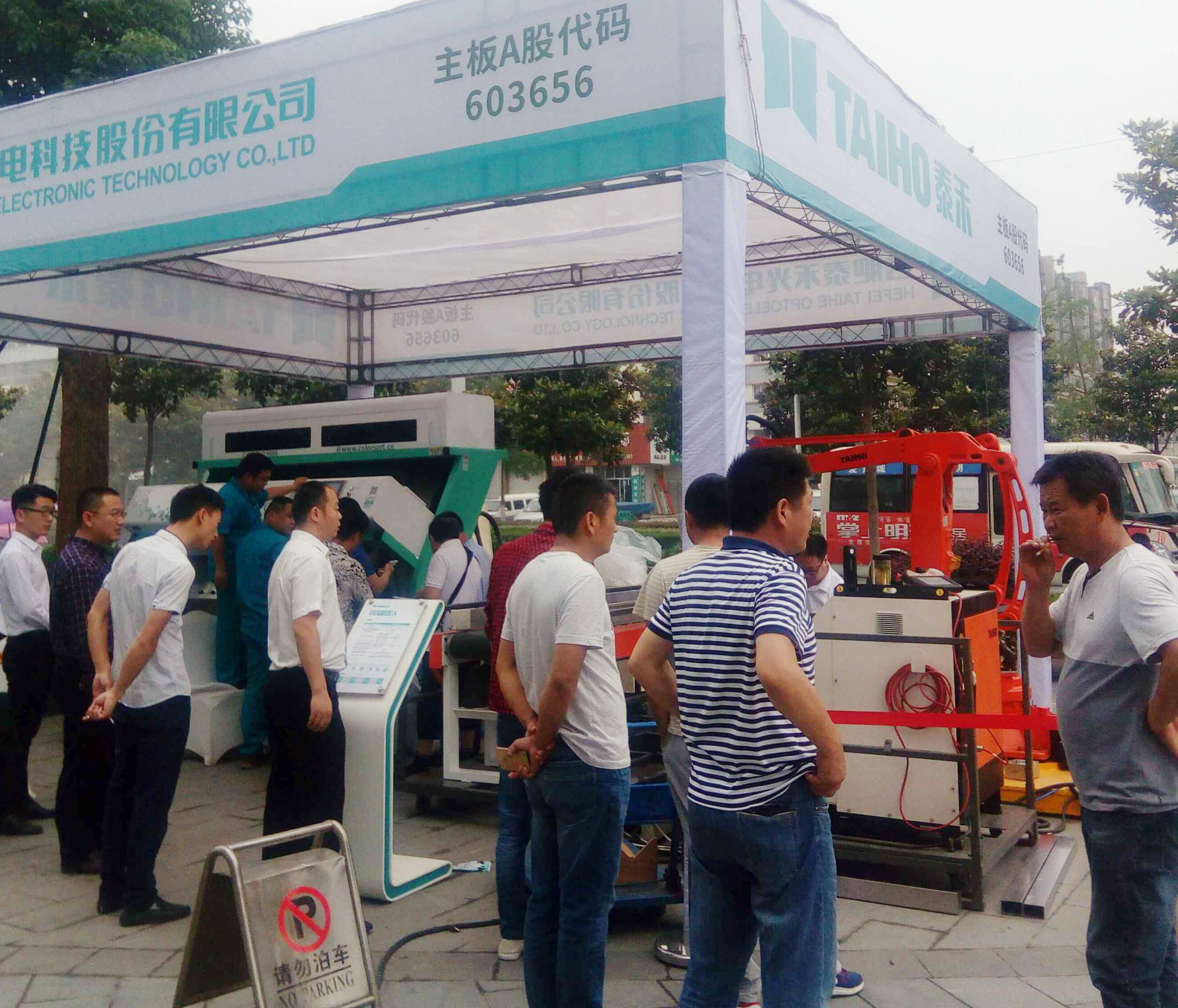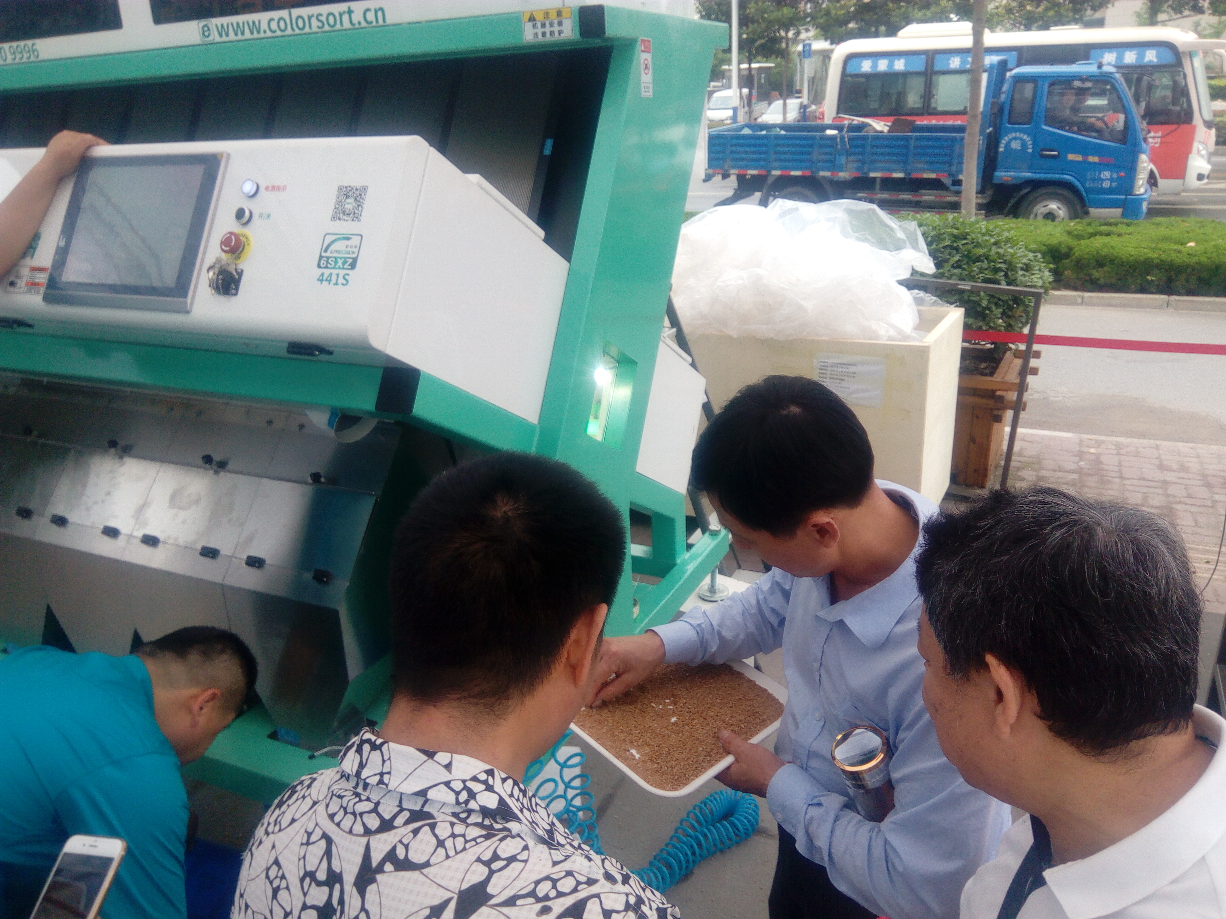 試料現(xiàn)場(chǎng)火爆,氣氛熱烈,近百家企業(yè)領(lǐng)導(dǎo)人到現(xiàn)場(chǎng)觀摩并詳細(xì)的了解了泰禾色選機(jī)色選效果和工業(yè)機(jī)器人的運(yùn)作,紛紛點(diǎn)贊。