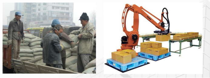傳統(tǒng)的人工搬運(yùn)碼垛,員工勞動(dòng)強(qiáng)度大,生產(chǎn)效率低,且操作難,培訓(xùn)難,而智能碼垛機(jī)器人最大的一個(gè)優(yōu)勢(shì)就是解放勞動(dòng)力,一臺(tái)碼垛機(jī)至少可以代替三四個(gè)工人的工作量,提高了勞動(dòng)效率。