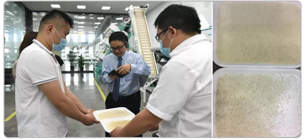 在設(shè)備演示廳,工作人員現(xiàn)場演示了智能分選流程及效果。泰禾智能在農(nóng)副食品分選領(lǐng)域深耕多年,積累了多項(xiàng)關(guān)鍵技術(shù)與科技成果,以核心科技守衛(wèi)人民群眾的糧食健康與食品安全。調(diào)研組對智能分選項(xiàng)目在國家糧食安全和農(nóng)業(yè)產(chǎn)業(yè)化的應(yīng)用價(jià)值給予高度認(rèn)可。