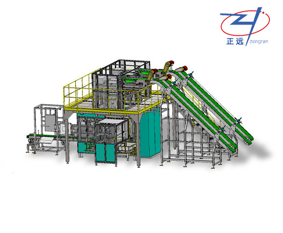 雙層爬坡輸送機(jī);發(fā)射/計數(shù)輸送機(jī);落袋整形機(jī)構(gòu);滑移倉;雙倉二次包裝機(jī);縫包機(jī)/縫包輸送機(jī)。