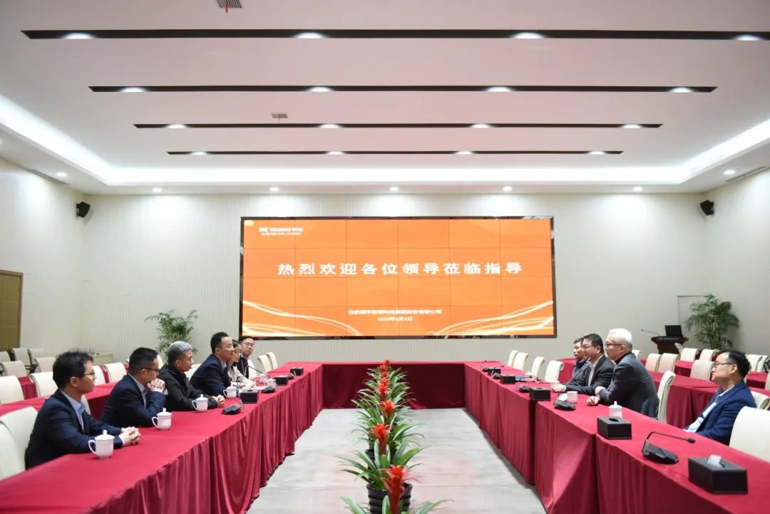 3月3日,合肥市商務局(市貿(mào)促會)商會處處長余洪滔與Duravant雋鋒集團食品分選加工事業(yè)部總裁Jack Lee、中國董事總經(jīng)理呂勇及高級經(jīng)理王青剛等高層管理人員造訪泰禾智能。總經(jīng)理孫偉,副總經(jīng)理石江濤,副總經(jīng)理黃慧麗陪同調(diào)研。